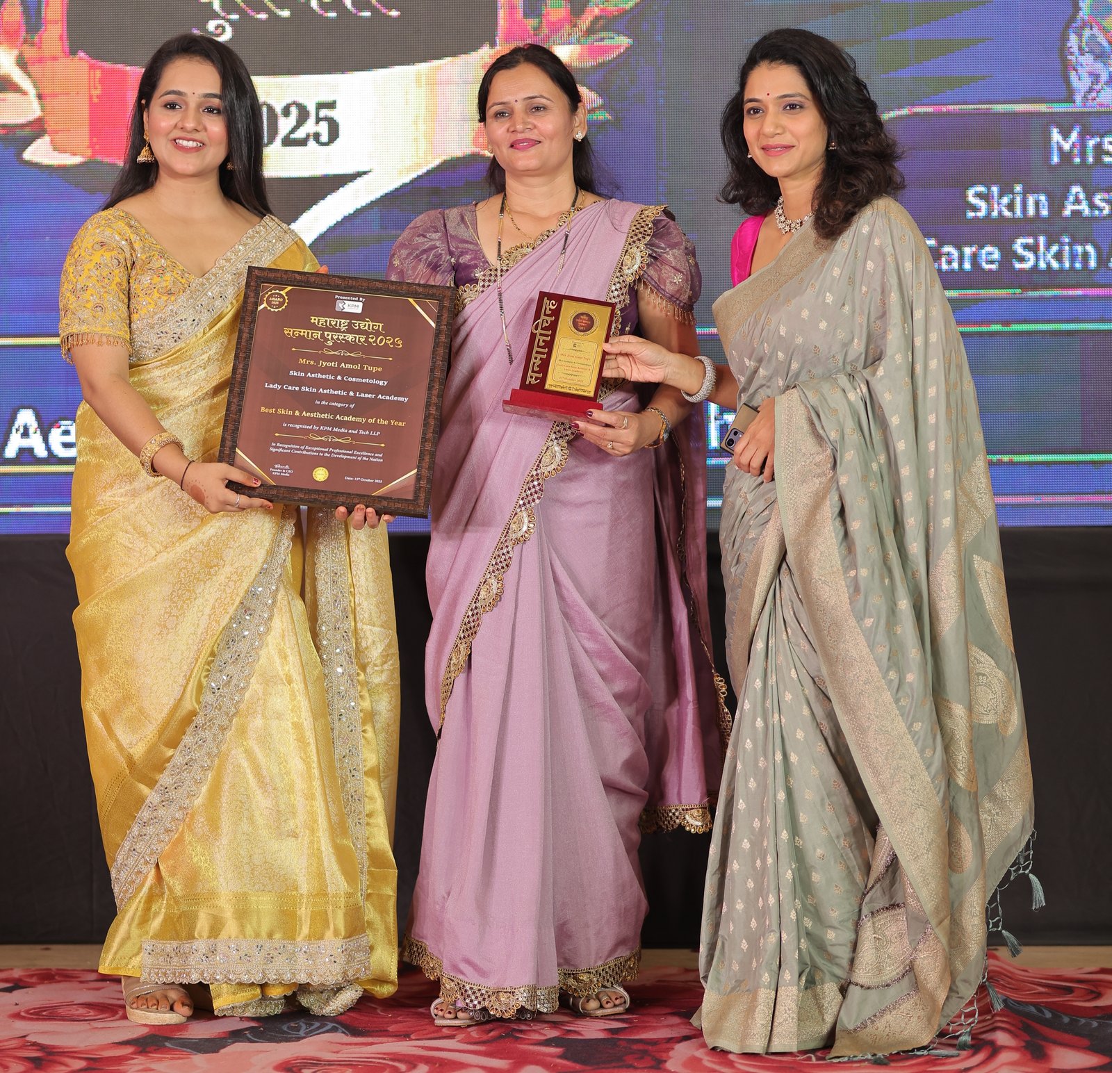 Skin Asthetic & Cosmetology या क्षेत्रात केलेल्या उल्लेखनीय कामाची दखल घेत केपीएम मीडिया अँड टेक एलएलपिच्या वतीने देण्यात येणारा २०२५ सालचा महाराष्ट्र उद्योग सन्मान पुरस्कार ज्योती अमोल तुपे यांना प्रदान करण्यात आला आहे.