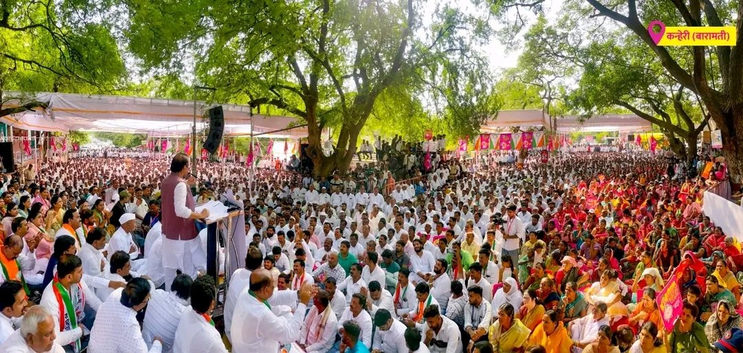 आपला उमेदवारी अर्ज दाखल केल्यानंतर अजितदादा यांनी आपल्या प्रचाराचा शुभारंभ कन्हेरी येथील श्री मारुतीरायाच्या मुर्तीला नमस्कार व आरती करून जाहिर सभा घेतली. यावेळी जाहीर सभेला बारामती व पंचक्रोशीतील हजारो कार्यकर्ते, विविध क्षेत्रातील पदाधिकारी, नामवंत मंडळी आवर्जुन उपस्थित होती. मिरवणुकीत तसेच अर्ज दाखल करताना अजितदादांचे सुपूत्र पार्थ आणि जय हे दोघेही त्यांच्या सोबतच होते.