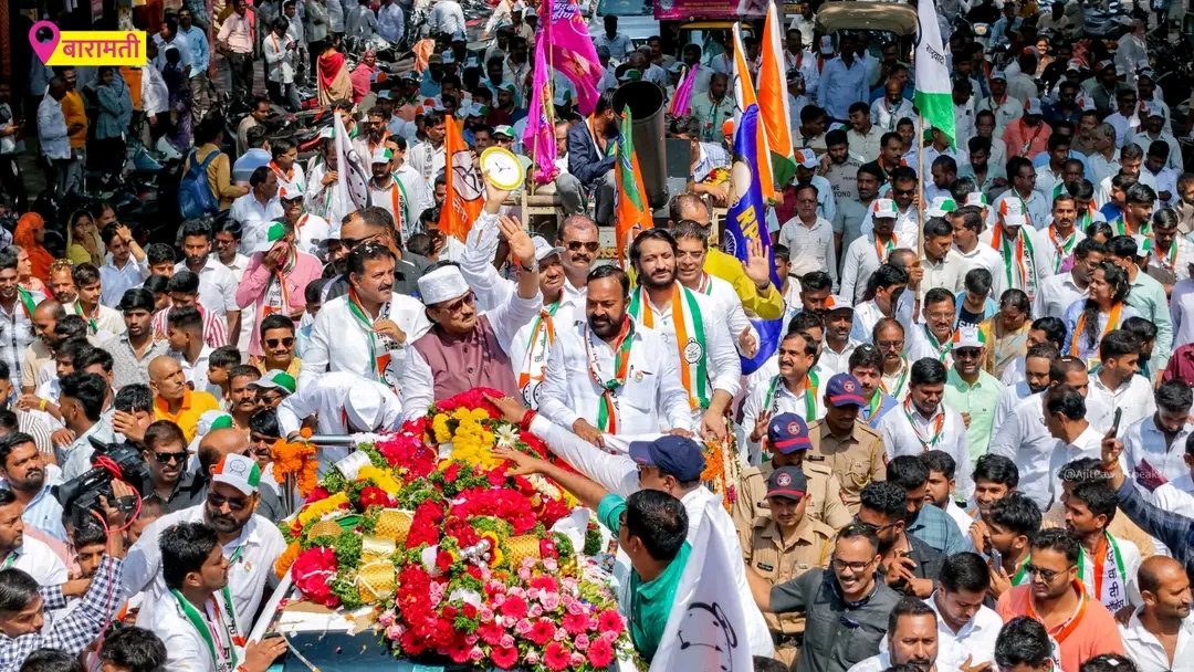 महामानव डॉ. बाबासाहेब आंबेडकर यांचे स्मारक तसेच कसबा येथील छत्रपती शिवाजी महाराज यांच्या पुतळ्याला वंदन करून भव्य मिरवणुकीने बारामती शहरातील प्रमुख मार्गावरून हजारो कार्यकर्त्यांच्या गराड्यात अजित पवार यांनी प्रशासकीय भवन येथे जाऊन निवडणूक निर्णय अधिकारी वैभव नावडकर यांच्याकडे आपला उमेदवारी अर्ज दाखल केला. यावेळी त्यांच्यासोबत राजकीय व सहकार क्षेत्रातील, औद्योगिक क्षेत्रातील नामवंत पदाधिकारी तसेच माळेगाव सहकारी साखर कारखान्याचे अध्यक्ष ॲड. केशव जगताप, सोमेश्वर सहकारी साखर कारखान्याचे अध्यक्ष पुरुषोत्तम जगताप व माजी नगरसेवक किरण गुजर यांचेसह राष्ट्रवादीचे पदाधिकारी, संचालक मंडळ तसेच मोठ्या संख्येने महिला या मिरवणुकीत सामील झाल्या होत्या.